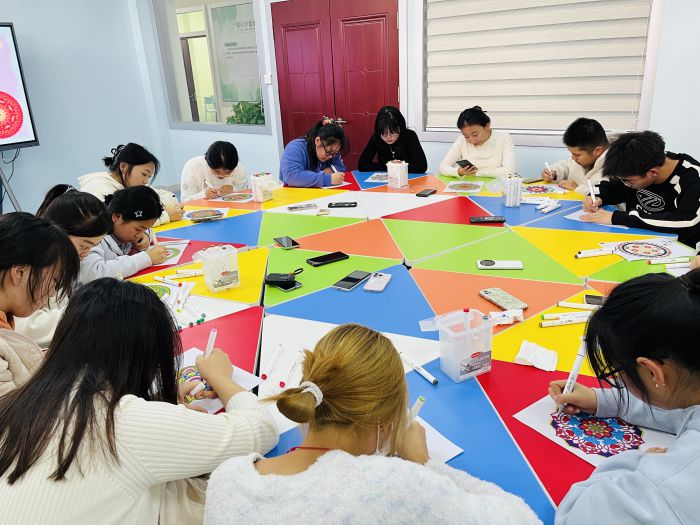 曼陀罗绘画是一种艺术性的表达,也是一个天然投射的过程,在曼陀罗绘画时,可以投射出内心的想法和感受,借此表达自己的情绪。利用这种艺术表达的方式引导学生增进自我觉察和情绪表达,提升专注力,建立规则感,探索内在自我,找到情感释放与表达的出口。
