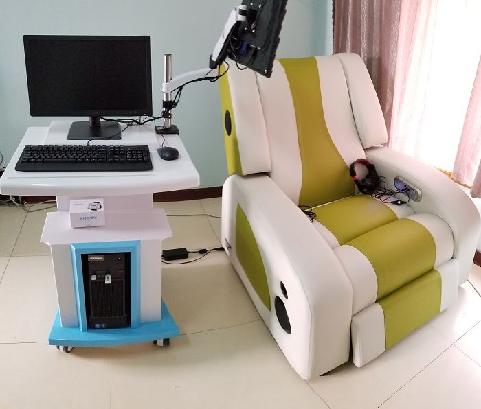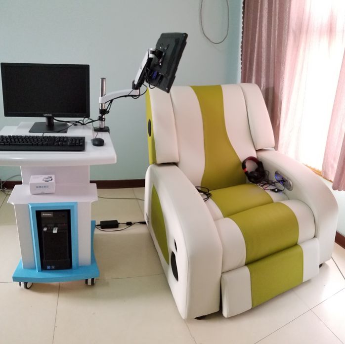 我中心为更好地服务于广大学生,我中心引进了先进的测量系统,并且配备了多台电脑,以便能同时为多个学生进行测量。同时,我中心还引进了先进的反馈型音乐放松仪,包含:放松躺椅、指脉式传感器、电脑、液晶显示器、专用软件一套。可根据人的心理情绪与生理的变化,通过指脉式传感器,动态地根据来访者的心理情绪变化在人体电生理反应信号反馈到电脑上,经电脑软件分析调整,输出符合使用者当时情绪的音乐节奏和频率以及图像变化,有效地达到放松情绪的目的。