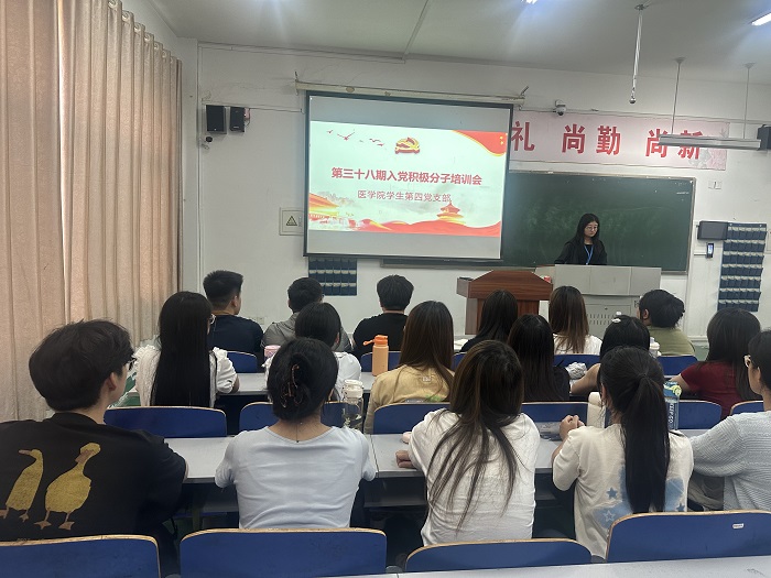 为全面提升学员政治素养与理论水平,5月29日,医学院四个学生党支部联合开展第38期入党积极分子集中培训。全体学员在杏坛楼参与线下学习,培训由各支部书记主持,围绕"如何早日成长为合格共产党员"主题展开专题教学。
