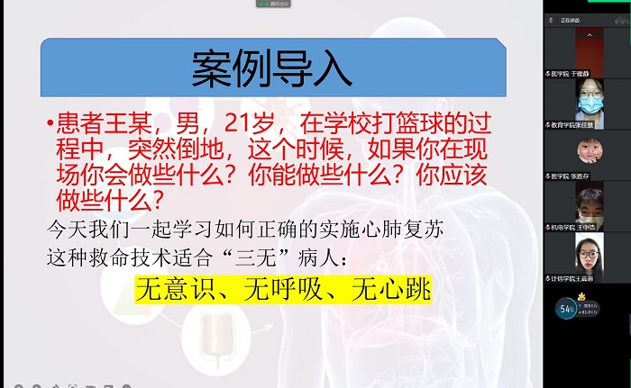 2022年8月19日,问鼎网页版登录入口南丁格尔护理志愿服务队以“腾讯会议”的方式开展了“关爱生命,救在身边”心肺复苏的线上健康宣教活动。全校师生踊跃参与。