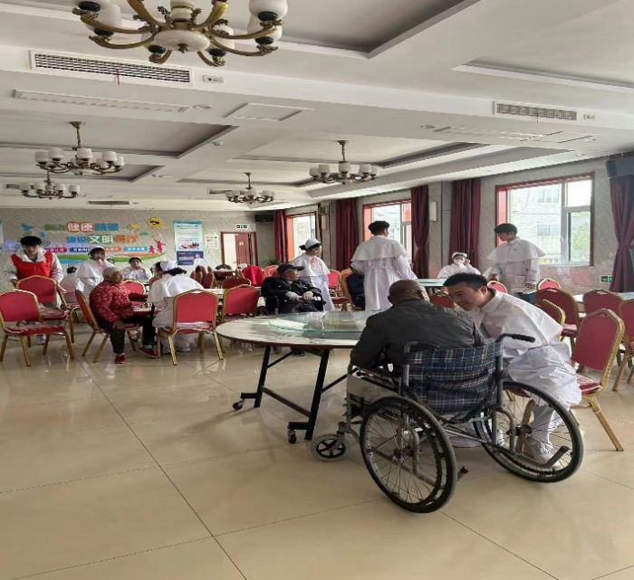 此次活动由南丁格尔志愿服务队成员深入基层,进入养老院,开展志愿服务。活动现场熙熙攘攘,人来人往,志愿者们尽心尽力地为老人量血压,测血糖,并叮嘱他们要按时服药,积极进行体育运动,注重身心健康。通过讲述疾病的危害,让老人们切实体会到健康的重要性,养成健康的生活方式。志愿者服务队的成员们也与老人们吐露心扉,与老人们一起愉快的聊天,和老人们一起下象棋,打扑克,大家也和老人们一块拍照留念,将这温馨的时刻定格。