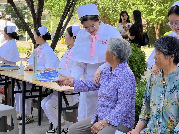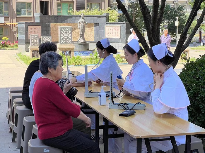 首先,志愿者们首先为老人们进行血压测量、血糖测量、健康宣教等志愿服务,并为老人进行面对面的疑惑解答:其次开展慰问演出,《歌唱祖国》《我爱你中国》等红歌、舞蹈节目形式多样,精彩纷呈。此外,志愿者们还陪伴老人们聊天、做游戏,现场满是欢声笑语,老人们的脸上洋溢着幸福的笑容。