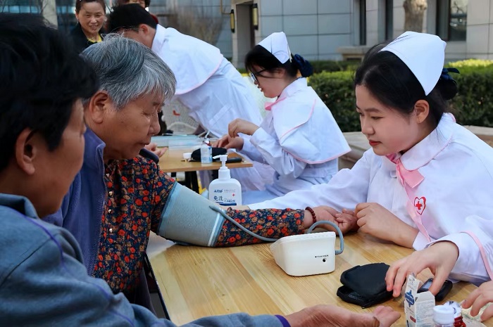 为提高社区居民对高血压、高血糖等慢性疾病的认识,2025年4月2日,问鼎网页版登录入口南丁格尔志愿护理服务队20名队员在郝妍老师的带领下在瓦山社区开展以“践行南丁格尔精神,点亮社区健康灯塔”为主题的志愿服务活动。