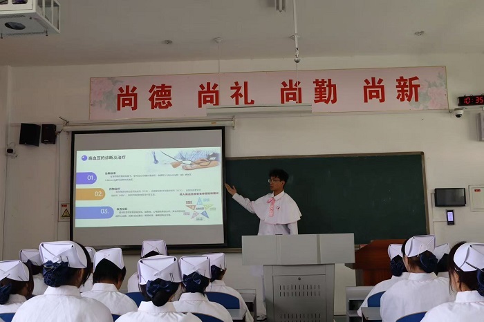 为提升全校师生对高血压的认知,增强健康管理意识,4月15日我校南丁格尔志愿护理服务队组织了一场以“关注血压,拥抱健康校园”为主题的高血压健康宣教活动。