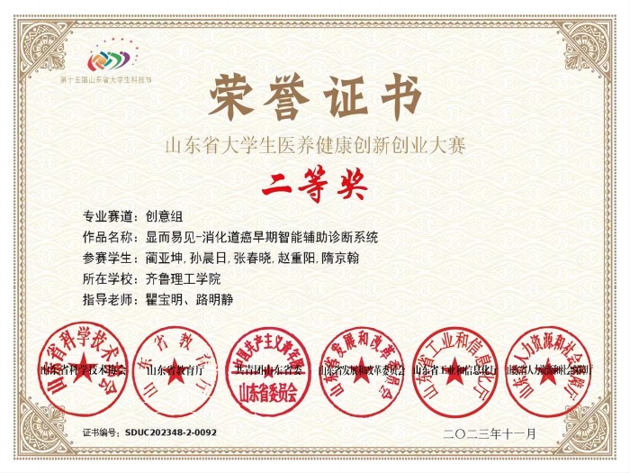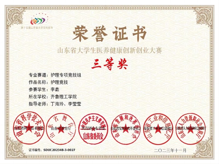 本届科技节由山东省科学技术协会、山东省教育厅、共青团山东省委、山东省发展改革委、山东省工业和信息化厅、山东省人力资源社会保障厅联合主办,本次比赛主题为“智慧医养 共筑健康”,分为创意组、创新组、创业组、“颐养”健康专项双创组和护理竞技组五个组别,来自全国15个省份的93所院校的1881支队伍参赛,最后共有611支队伍进入决赛。决赛采用10分钟项目路演和2-3分钟的专家与赛手意见交流,项目路演包括视频、项目综合介绍、实物展示与现场质询。比赛过程中,我院学子自信大方、沉着冷静、思路清晰、语言流畅、操作娴熟,获得评委的一致好评。