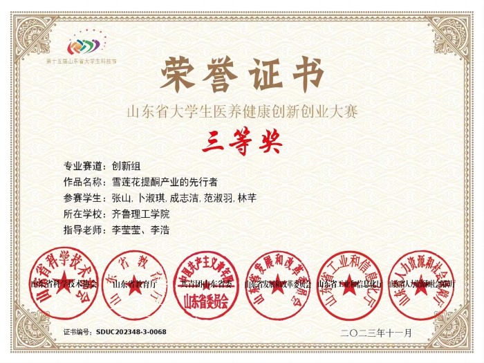 10月19日至20日,第十五届山东省大学生科技节—“文硕杯”第四届山东省大学生医养健康创新创业大赛决赛在济宁曲阜举行。我院共有11个项目入围决赛,经过激烈角逐,获得二等奖6项、三等奖5项。