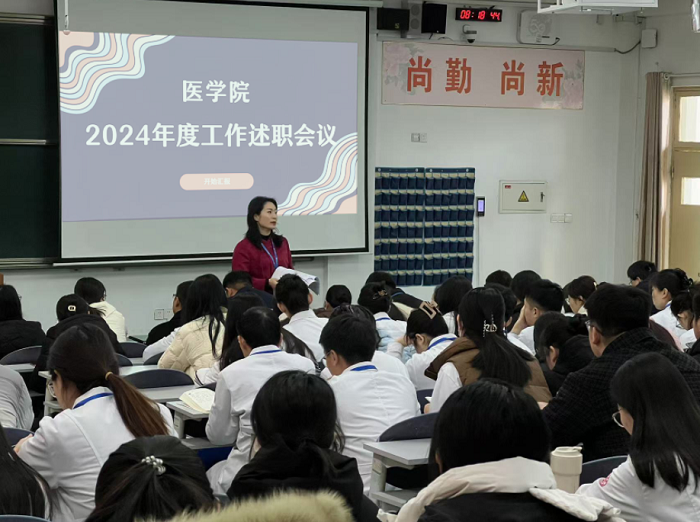 1月16日,医学院2024年度述职工作会议暨全体教职工年终总结大会于教学楼B508教室圆满举行,全体教职工参会,共同回顾过往、展望未来。