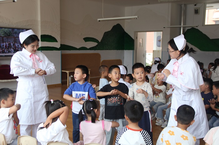 在金秋送爽、硕果累累的季节里,为积极响应社会号召,弘扬医学精神,普及健康知识,学院团总支于2024年9月18日带队进入章丘区青未了幼儿园(绣阳园)开展了“健康护航,童心共筑梦想”主题志愿服务活动。此次活动不仅为幼儿园的小朋友们送去了温暖的关怀与专业的健康指导,也进一步提升了医学院学子的社会责任感与实践能力。