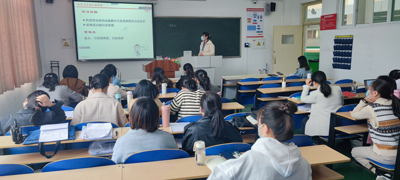 我院一线专任教师积极参加了本次教学技能比赛,认真准备,精心设计教学内容,态度端正,展现风采。单超越老师以“引发剂”为切入点,以“星星之火可以燎原”为导入,巧妙的教授了引发剂的原理和作用。张咪老师以“三聚氰胺”为线索,串联了凯氏定氮法测蛋白质含量的知识点。樊伟希老师以提出问题、解决问题的模式为我们讲授了一堂精彩的有机化学课程。胡晶晶老师将生活中的现象与知识相结合,给大家科普了汽车爆震的现象和原因。张俊娇老师则是详细的展示了如何进行能量衡算。