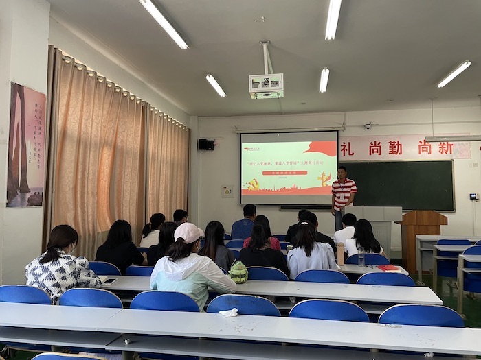 更新时间:2023-06-15 08:15 为进一步教育党员干部牢固树立宗旨意识、提高党性修养,充分发挥党支部战斗堡垒作用,6月12日下午,我支部在教学楼A204开展了“回忆入党故事,重温入党誓词”主题党日活动。本次活动由李云杰书记主持,全体党员参加。