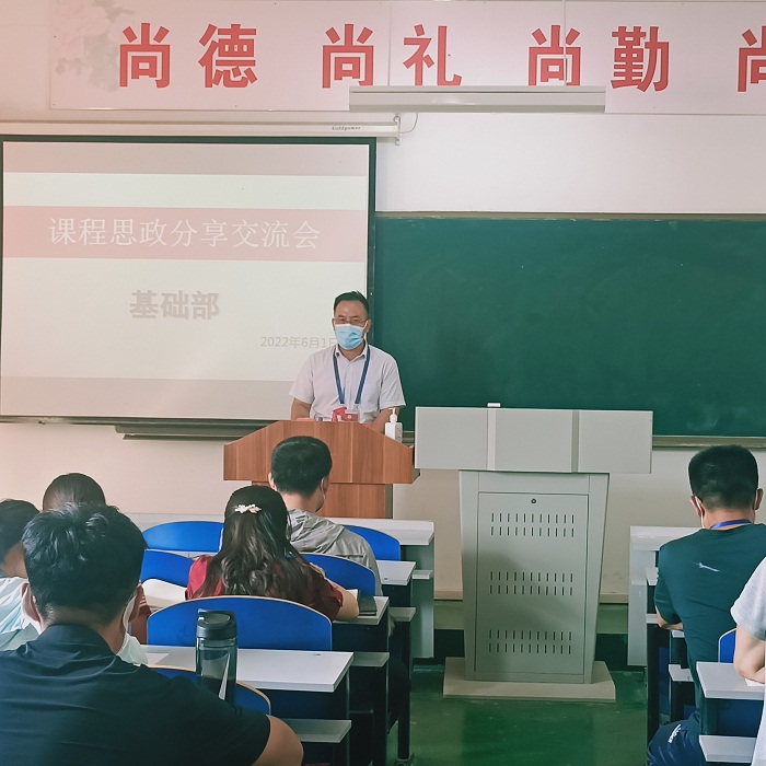 更新时间:2022-06-02 16:03 为进一步深化课程思政教学改革,指导教师深入挖掘课程思政教学元素,将思想政治教育融入人才培养全过程和教育教学的各个环节,丰富课程育人内涵,推动思政教育与专业教育的协同共进,实现“门门课程有思政、教师人人讲育人”的育人新局面,基础部于6月1日在A213举办了课程思政分享交流会。本次会议由基础部主任助理李晓杰副教授主持,全体教师参加了本次会议。