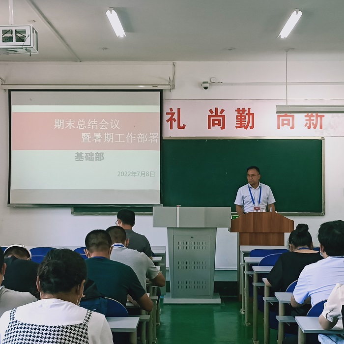 更新时间:2022-07-08 16:48 2022年7月8日下午,基础部在教学楼A204召开本学期期末总结暨暑期工作部署会议。会议由基础部主任蔡秀国教授主持,基础部全体教师共同参加了会议。
