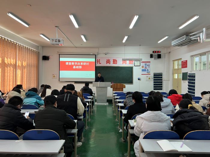 更新时间:2023-03-03 16:36 烟花三月,万象更新。在三月的第一天,基础部全体老师于下午13:30在教学楼A204进行了课堂教学改革研讨活动。本次活动由基础部主任蔡秀国教授主持,全体教师参加。