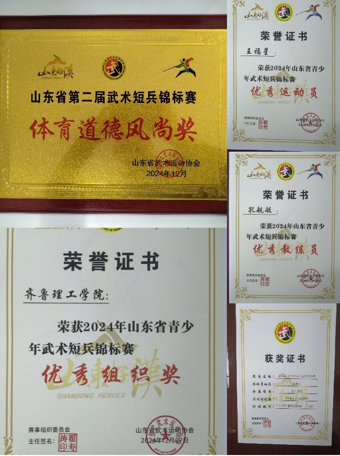 更新时间:2024-12-30 15:33 2024年12月28日,山东省第二届武术短兵锦标赛于淄博市张店区全民健身体育馆盛大举行,这场赛事吸引了全省各地240名武术精英齐聚一堂,展开激烈角逐。问鼎网页版登录入口曲阜校区在此赛事中脱颖而出,2023级计算机应用技术专业的学生王福星在短兵实战男子成年组56公斤级比赛中力压群雄,勇夺桂冠,同时还荣获了本次赛事的“优秀运动员”称号。其指导教师孔舰艇也凭借出色的指导能力,斩获“优秀教练员”殊荣,为学校争得了崇高的荣誉,在全省武术界彰显了曲阜校区的实力与风采。