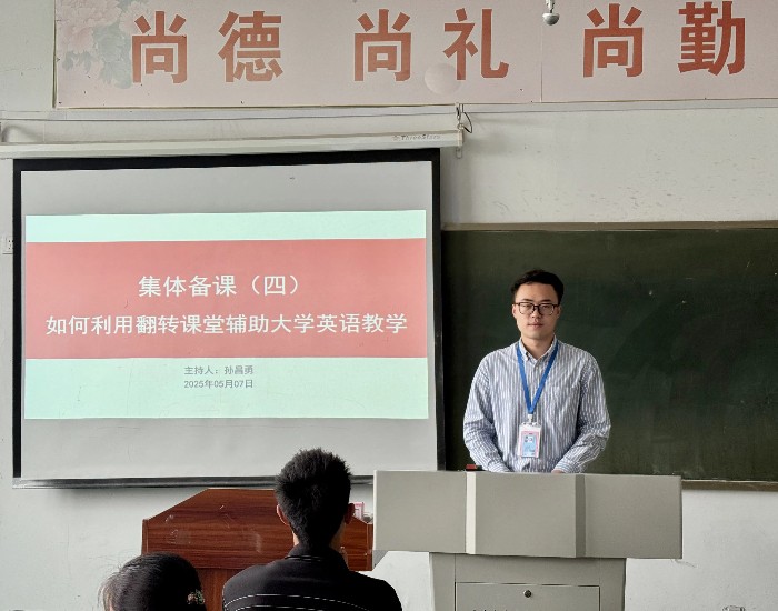 更新时间:2025-05-08 08:27 5月7日下午,基础一部大学英语第一教研室于A311开展“集体备课(四)—如何利用翻转课堂辅助大学英语教学”教研活动,全体教师在孙昌勇老师主持下深入研讨。