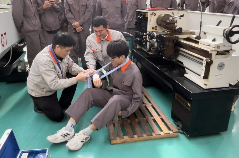 本次演练模拟学生操作机床时,发生手指被机床夹住的伤害事故,指导老师立即采取相应措施并报告,总指挥随即启动事故应急预案,各救援小组按照预案分工组织实施,演练各环节紧密衔接,并在此过程中详细讲解流程和注意事项。参与人员配合默契,达到了预期的演练效果。
