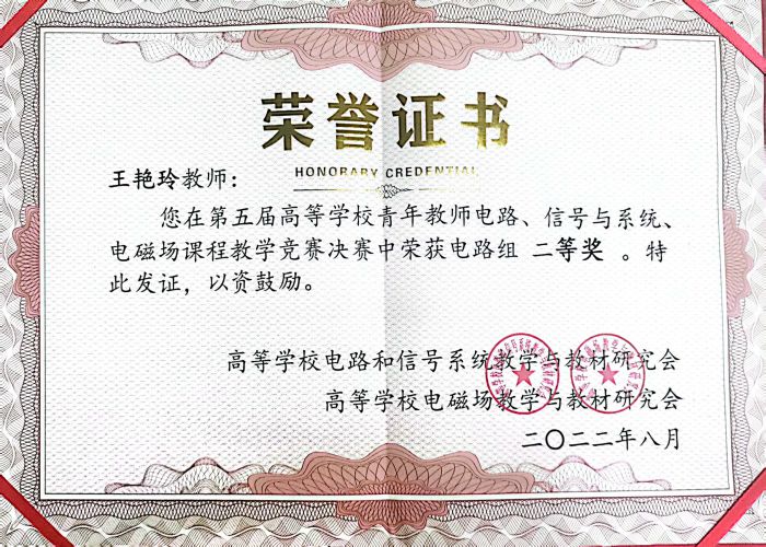 8月6日,第五届全国高等学校青年教师电路、信号与系统、电磁场讲课比赛在青海大学顺利举行。经过预赛选拔,来自全国各高校的53名教师晋级决赛,其中有21名教师晋级电路组决赛。我校智能制造与控制工程学院教师王艳玲在比赛中获得电路组全国二等奖。