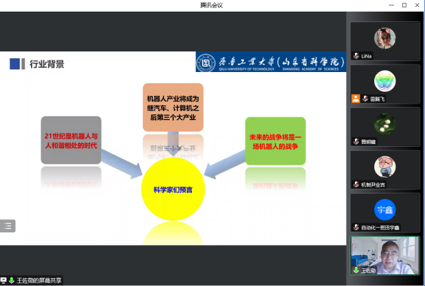 2022年11月24日下午,作为电子信息学科系列学术讲座的第三场,我院邀请了山东省有突出贡献的中青年专家王佐勋教授,通过线上直播的方式为全院师生做了题为“工业机器人与智能制造”的学术讲座。本次讲座由科研院长雷腾飞主持,院领导、各研究所、教研室老师及智能制造工程、自动化等专业学生共计176人参加了讲座。