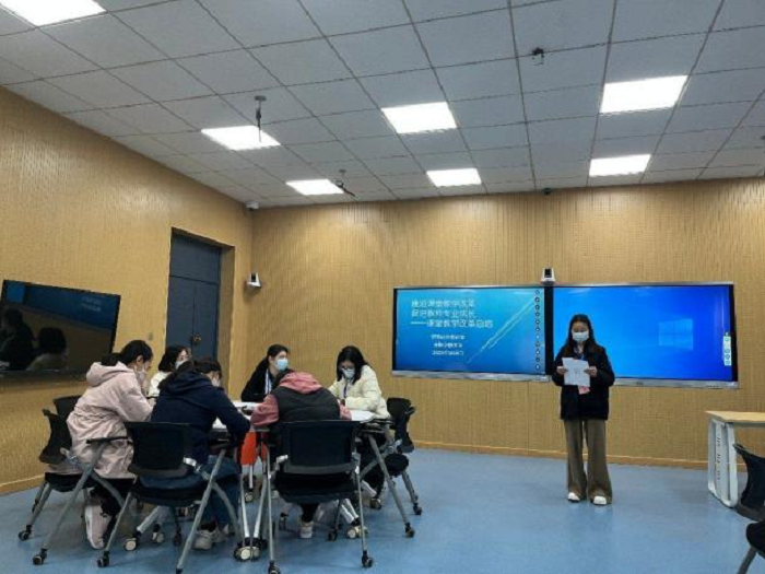 随后,由王妍妍等八位青年教师代表对其上学期的课堂教学改革成效进行了汇报,并提出了课堂教学改革过程中遇到的问题,教研室教师针对问题进行讨论,提出改进措施。