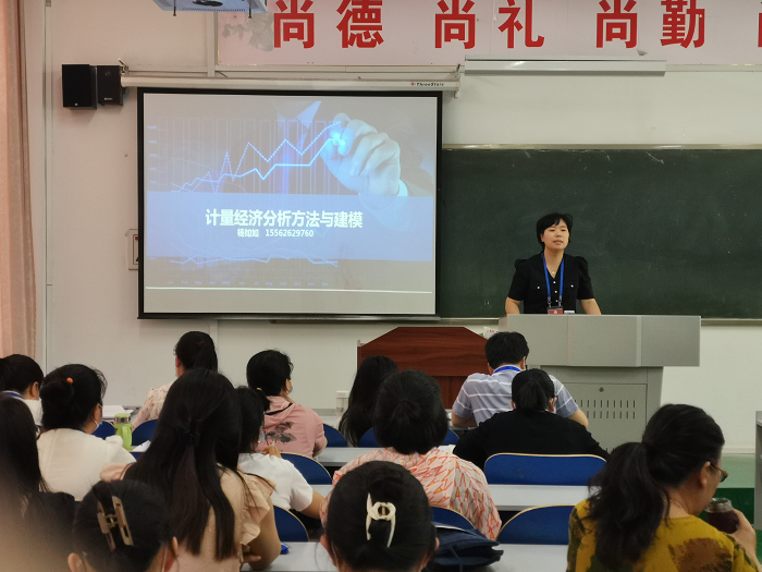 更新时间:2023-05-19 14:52 为提升青年教师的科研水平和科研能力,商学院于2023年5月17日下午开展了“ 计量经济分析方法与建模”主题讲座活动。本次活动由贸易经济教研室主任石爱玲老师主持,贸易经济教研室长期从事计量经济学教学工作的杨如如老师主讲,全院40多名教师聆听了讲座。