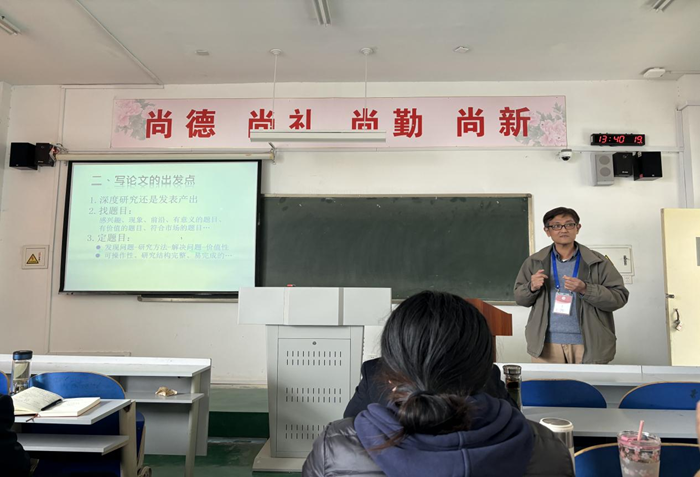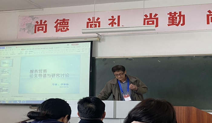 接着,李秉翰副教授以“服务贸易论文导读与研究讨论”为主题进行了讲授与分享。李秉翰副教授结合自身深耕服务贸易领域的科研经验,聚焦文献阅读的工具与方法,详细讲授了涵盖文献读取、论文写作出发点、论文导读以及文献搜索在内的四大板块。在此基础之上李秉翰副教授进一步以应用范围广泛的“服务贸易参与”“竞争力”“政经高度”三大热门研究主题为抓手,选取多篇期刊文献进行了案例讲解。
