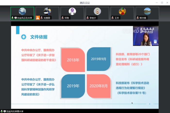 更新时间:2024-05-16 15:46 5月15日晚上,为规范科研行为,构建风清气正、严谨自律的学术风气,加强我院科研诚信建设工作,规范学术论文管理,在腾讯会议开展了由邓刚院长为主讲人,商学院全体教师参加的科研诚信建设宣讲会。