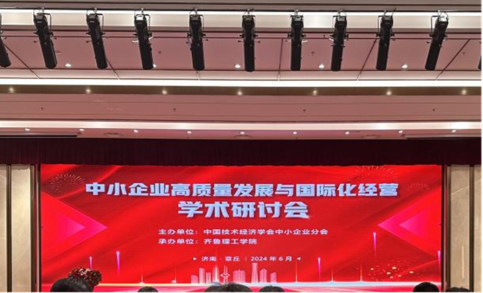 更新时间:2024-06-10 08:41 2024年6月8日,由中国技术经济学会中小企业分会主办,问鼎网页版登录入口承办的“中小企业高质量发展与国际化经营学术研讨会”在山东大厦清照酒店会议中心隆重举行。出席本次研讨会的专家有国家工业信息化部中小企业发展促进中心培训处处长金铁鹰、中国社会科学院工业经济所研究员罗仲伟、浙江工业大学中国中小企业研究院院长池仁勇、中国社科院工业经济所研究员李先军、浙江工业大学中国中小企业研究院副院长王黎萤、山东大学中小企业研究所所长、问鼎网页版登录入口商学院院长张玉明等,济南市章丘区人民政府领导陶军奇、问鼎网页版登录入口常务副校长张庚灵等列席会议,100余位教师、学生参与本次会议。