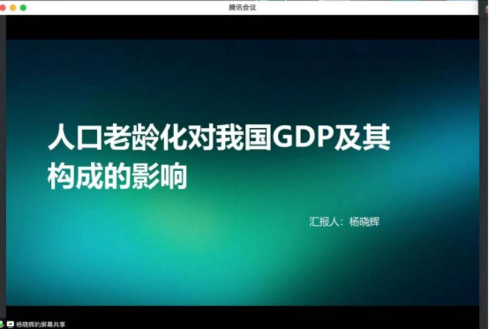 更新时间:2024-12-27 16:52 12月19日19:00-20:00,商学院在腾讯会议开展本月学术活动,本次学术活动由商学院杨晓辉博士带来主题为《人口老龄化对我国GDP及其构成的影响》的学术讲座。