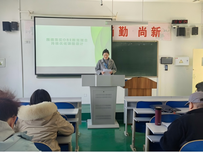 活动开始,王雯雯主任点明主题,简要介绍活动流程,让大家对本次教研活动有了清晰的整体认知,为后续环节的顺利推进奠定基础。随后,王主任带来了关于 OBE 理念的深度讲解。她详细剖析了 OBE 理念的内涵、原则以及实施要点,强调以学生为中心、成果导向和持续改进的重要性,让教师们对这一理念有了系统且全面的认识,为后续的实践应用提供了理论支撑。