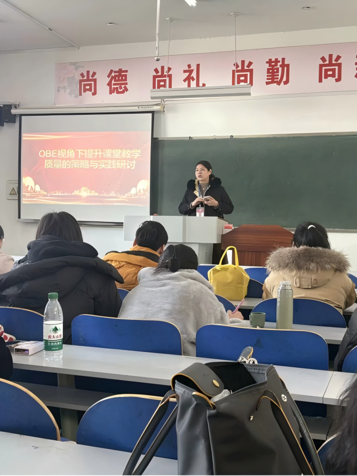 会上,全体教师共同观看北京理工大学薛庆教授主讲的《基于OBE理念的有效教学》视频。视频里,薛庆教授的讲解深入浅出,教师们如同专注的探索者,认真记录着OBE理念的关键要点。以学生为中心、聚焦学习成果、持续改进等原则,以及课程目标设定、教学内容组织等方面的应用实例,都被他们一一“收入囊中”,为后续的研讨筑牢了坚实的理论根基。视频观看结束,围绕“如何运用OBE理念提升课堂教学质量”这一核心话题,大家结合实际,分享了各自的经验和体会。