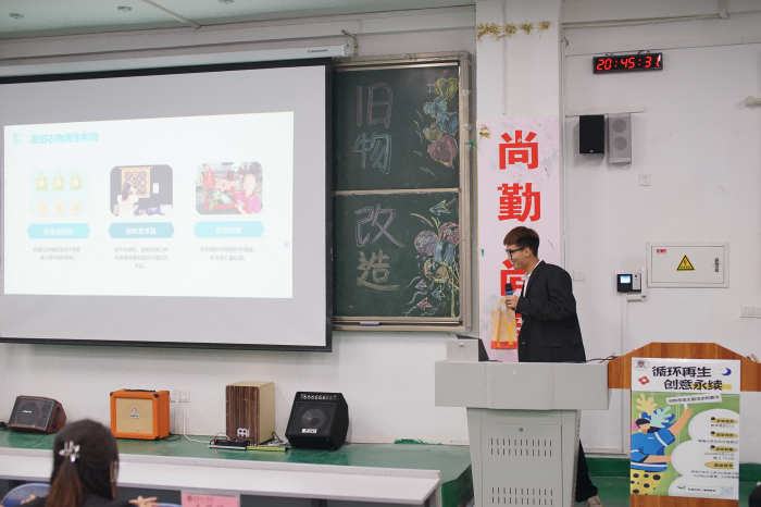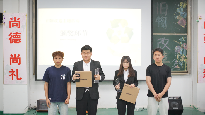 首先由主持人宣读此次比赛规则,每位参赛选手有三十秒的自我介绍时间,五分钟的PPT路演与两分钟的答辩,通过PPT各位参赛选手将自己的创意与观点进行展示,两分钟的答辩则进行详细说明让自己的创意锦上添花。每位参赛选手展示完作品之后,评委立刻进入打分环节,并在下一位选手结束后进行公布,最终由评委为获奖选手进行颁奖,赛后对获奖选手表示祝贺。各种旧物改造作品琳琅满目,让人目不暇接。有的学生将废旧衣物改造成了时尚背包,有的将废旧书籍制成了精美书签,还有的学生将废旧塑料瓶变身为实用的花瓶……每一件作品都凝聚了学生们的心血和智慧,也体现了他们对环保和创新的深刻理解。