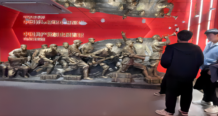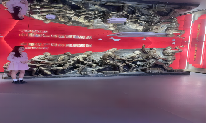 步入党史馆,映入眼帘的是鲜活的革命红,在馆内,我们看到了中国共产党的历史沿革、重要事件和历史人物的展览,展览的过程伴随着讲解员的讲解,让一幅幅历史画面映在眼前。
