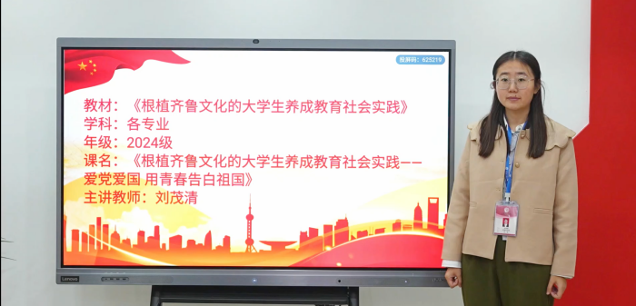 更新时间:2024-10-18 16:34 为进一步弘扬中华民族优秀传统文化,深化民族团结教育,铸牢中华民族共同体意识,2024年10月18日,我院辅导员刘茂清于我校四知驿站“党员活动室”开展了《根植齐鲁文化的大学生养成教育社会实践》——爱党爱国 用青春告白祖国的微课录制活动。
