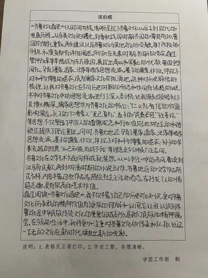 通过阅读齐鲁文化经典著作,同学们更加深入地了解了中华优秀传统文化的博大精深,增强了文化自信。全院形成了浓厚的阅读氛围,同学们在阅读中感受经典的魅力,在思考中收获成长的喜悦。