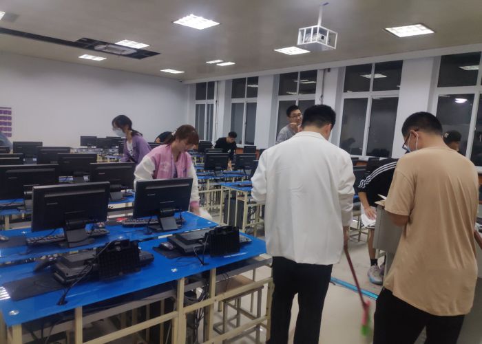 更新时间:2021-10-07 08:39 近期实验楼正在进行安装中央空调工程,安装后的实验室桌子和地面有许多灰尘和建筑垃圾,为了进一步增强同学们的劳动意识,充分发挥劳动实践教育在培养大学生综合素质方面的独特作用,提高大学生的社会适应能力,做到理论与实际相结合。10月3日下午我院组织学生对实验楼计算机实验教学中心的实验室清扫。