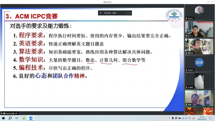 会上,蒋副教授详细介绍了ICPC和CCPC比赛的相关情况;具体阐述了参加算法类比赛的相关问题及注意事项。与会师生积极交流提问,探讨解决备赛以及学习期间遇到的问题。
