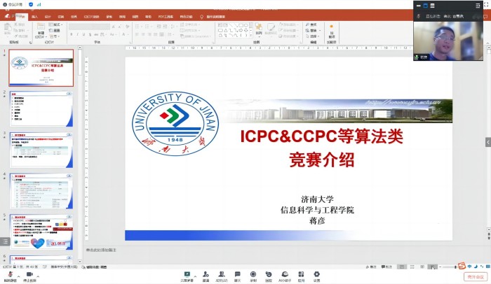 更新时间:2024-04-30 11:12 2024年4月29日,济南大学蒋彦副教授为计算机与信息工程学院师生带来了一场主题为“如何做好ICPC和CCPC备赛准备”的线上培训讲座。院长助理宫雪艳主持会议,竞赛指导老师和备赛学生参加了此次讲座。