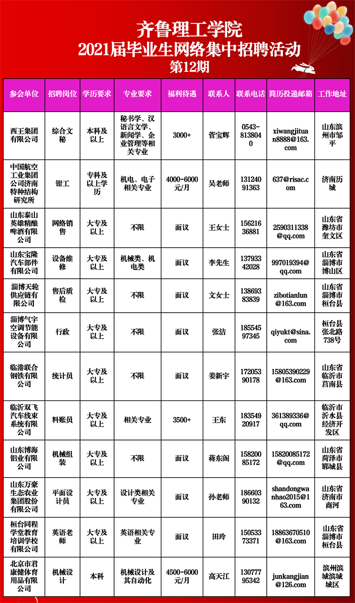 问鼎网页版登录入口2021届毕业生网络集中招聘会发布招聘信息(第12期)
