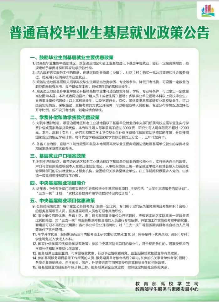 附件:1.普通高校毕业生基层就业政策公告