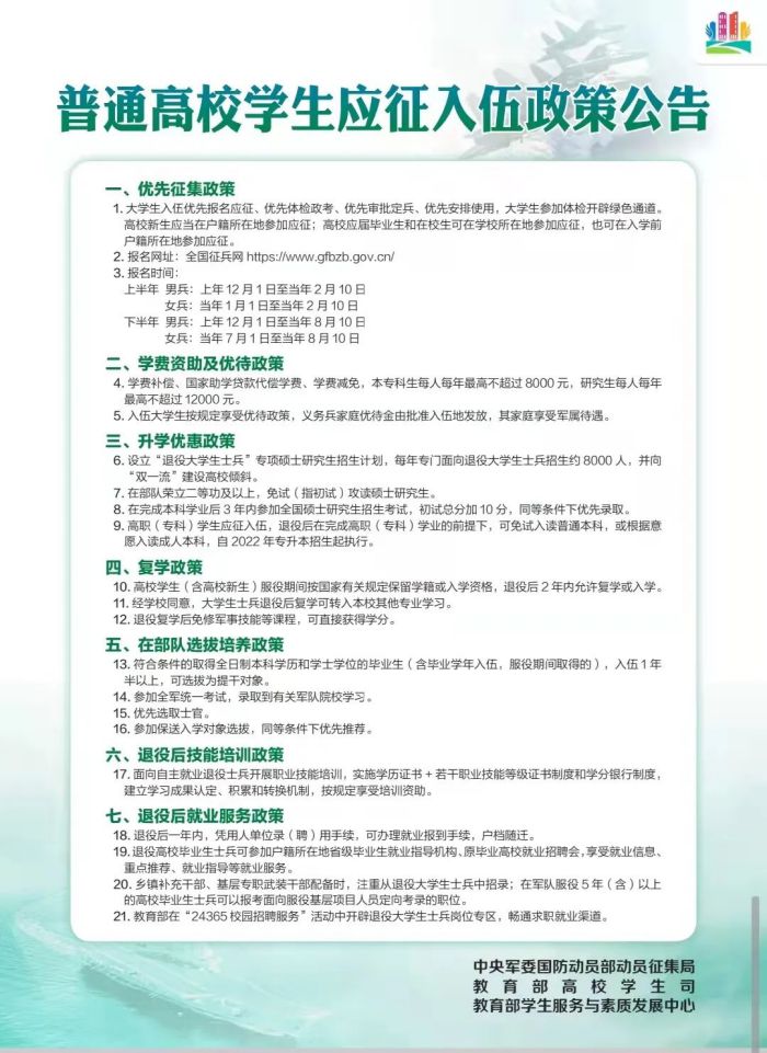 3.普通高校学生应征入伍政策公告