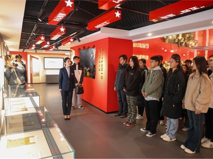 教育学院党支部书记许静如和新闻与传播学院党支部书记李伟组织带领37期入党积极分子们有序排队进馆参观,并安排相关注意事项。