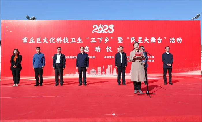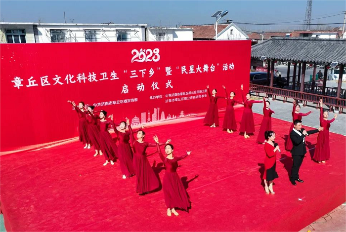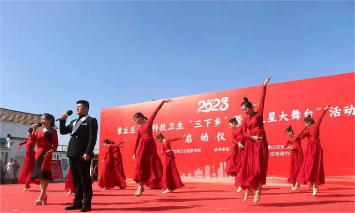 3月10日上午,由章丘区区委宣传部、区文旅局、区文联联合举办的“2023年章丘区文化科技卫生‘三下乡’暨‘民星大舞台’活动启动仪式”在相公庄街道鸣羊新村举行。教育学院2022级舞蹈表演专业受邀参加演出,用舞蹈的形式为村民带去丰盛的文化大餐。
