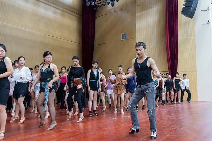 授课中,崔梦佳展示了高超的拉丁舞蹈技巧,利落的动作让观摩学习的教师和学生赞叹不已。随后,崔梦佳耐心地分步讲解,带领学生深挖每一步的细节技巧。