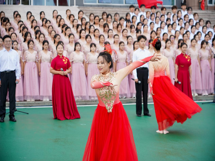 赛中,教育学院新生以饱满的热情、积极的态度演唱了《我和我的祖国》、《如愿》两首歌曲。整个表演过程分展现了教育学院学前教育专业新生的浓厚声乐功底以及舞蹈表演专业新生的高超舞艺,展现了我院新生热情昂扬的青春面貌。最终,教育学院参赛队伍取得了一等奖的好成绩,得到了学校领导及各二级学院院长的充分肯定。