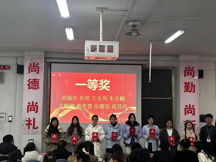 在颁奖典礼上,尚院长首先登台致辞。他对本次大赛的成功举办表示祝贺,对选手们的出色表现予以高度赞扬,同时也对教育学院的师范教育成果给予充分肯定,激励着师生们在教育之路上不断奋进。随后,李院长庄重地宣读了获奖名单,学院各教师代表为获奖同学颁发了荣誉证书。最后,尚院长对本次大赛做总结发言,他深入阐述了此次大赛的重要意义,鼓励大家以赛促学,不断提升专业技能,为未来的教育事业贡献力量,给典礼画上了圆满句号。