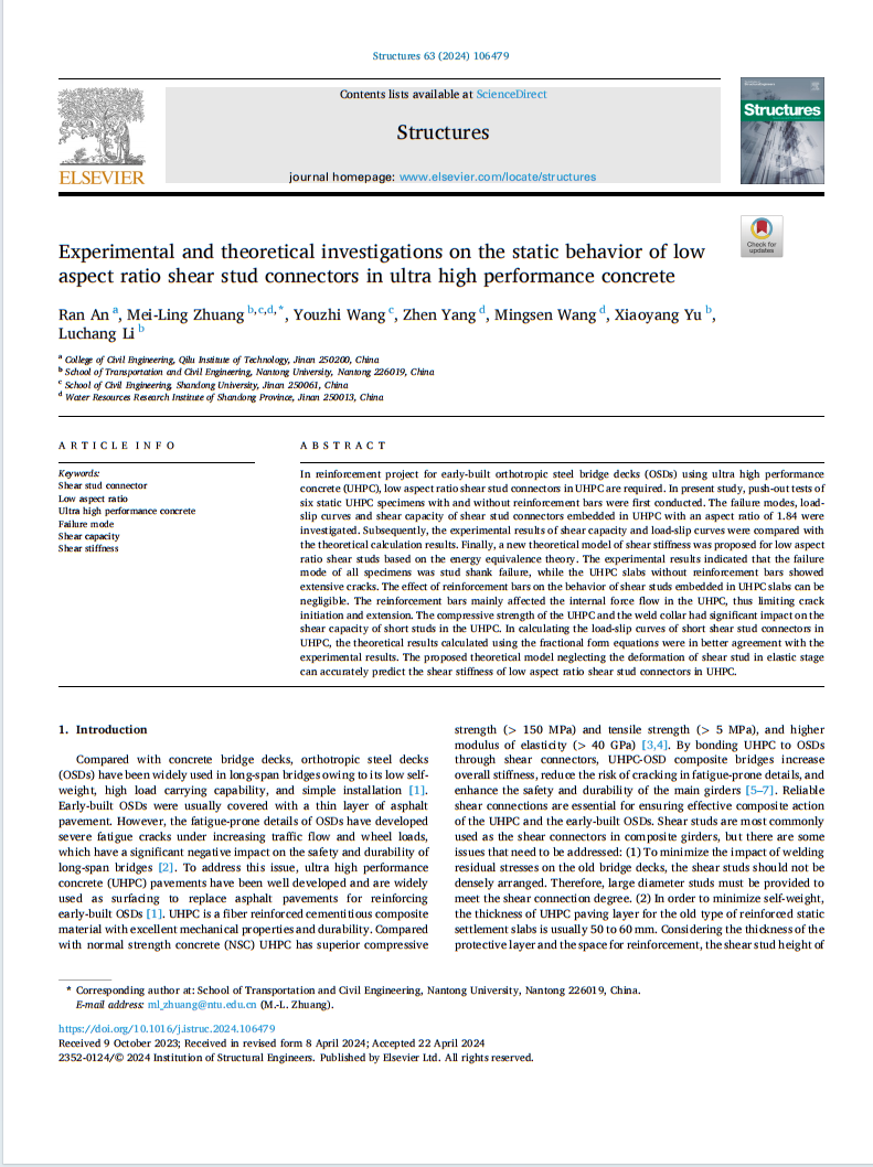 土木工程学院安然在《Structures》发表论文