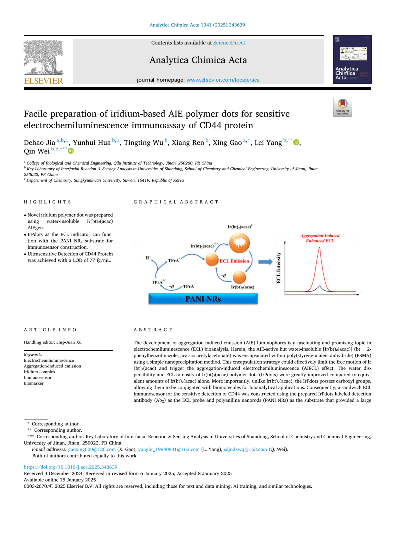 生物与化学工程学院高星在《Analytica Chimica Acta》发表论文