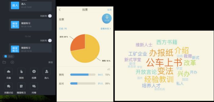 图6组图为投票、主题讨论等全员参与的课堂互动形式