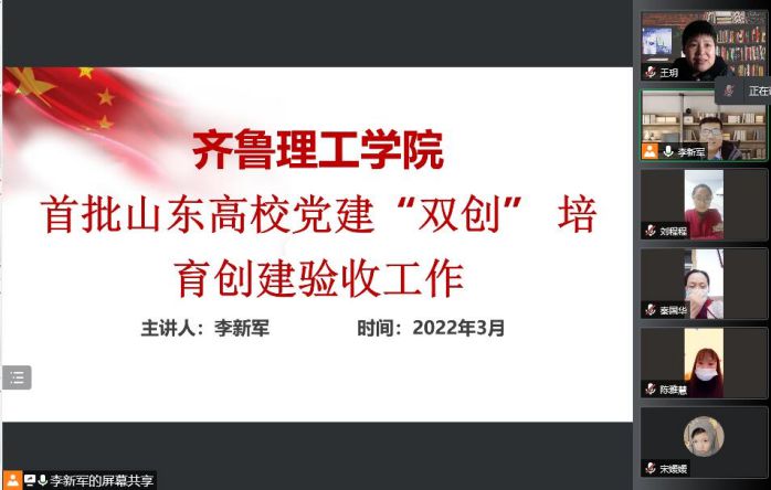 更新时间:2022-04-06 15:59 为了提高我院党支部工作水平,为即将到来的“山东省党建工作样板支部培育创建单位”验收工作做好充分准备,3月30日晚上8点,我院支部委员会全体成员利用腾讯会议与文学院党总支班子成员进行了线上交流,并邀请化工学院党支部书记李新军作专题报告。化工学院党支部作为首批“全国党建工作样板支部”培育创建单位,于2020年顺利通过验收,在党建工作中积累了丰富的经验。
