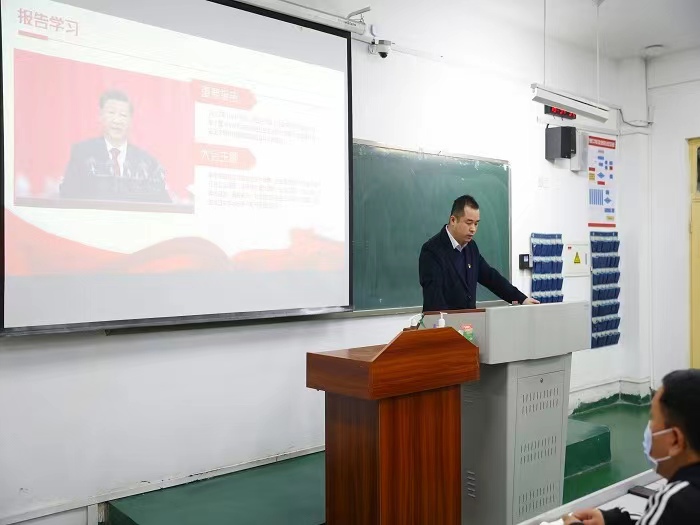 会议开始,韩震书记以“永远跟党走 奋斗新征程”为题做党的二十大精神宣讲。会议上,韩震书记和同志们细致认真的学习了“三个务必”和“三件大事”的核心。